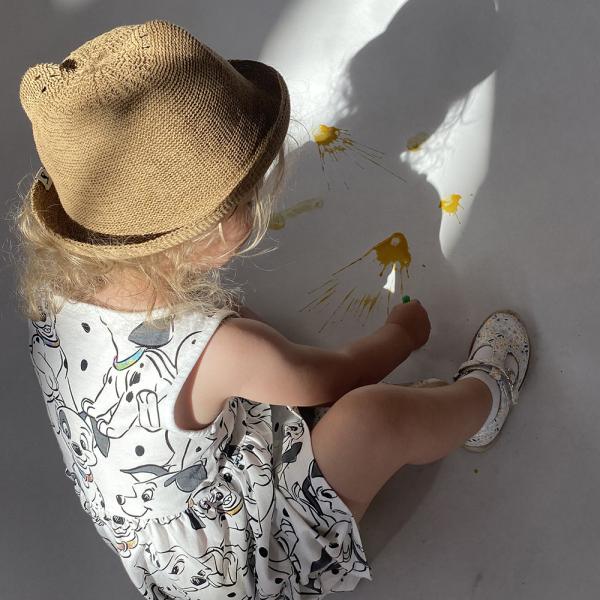 ‘We used natural inks, mainly using foraged and allotment finds: black berries, elderberries, nettles, weld, beetroot. I confess the turmeric and red cabbage were supermarket bought - but the lure of the yellow and adding bicarbonate of soda to the cabbage to watch turquoise ink bubble up was irresistible. The onion skins were gathered from allotment donations and rummaging at the bottom of trays in the veg aisle. Using weld - which I harvested from a field by the river - felt so ancient and magical and the ink was such a vibrant yellow. The Romans used it to dye wedding garments, and apparently the robes of the Vestal Virgins, and the green clothes worn by Robin Hood and his Merry Men were dyed with a mix of weld and woad.