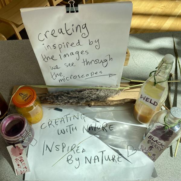 As a charity we recognise the climate and ecological emergency facing us all, have joined Culture Declares an Emergency and developed an Environmental Pledge. Given the themes for the day and our commitment to actively reducing our negative impact on the environment by minimising the resources we use, the waste we produce and the emissions we generate , Hilary carefully researched how all the materials offered could fit this brief whilst also wanting to inspire love and awe for the nature on our doorsteps.