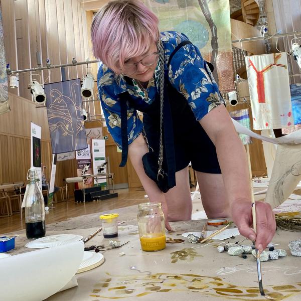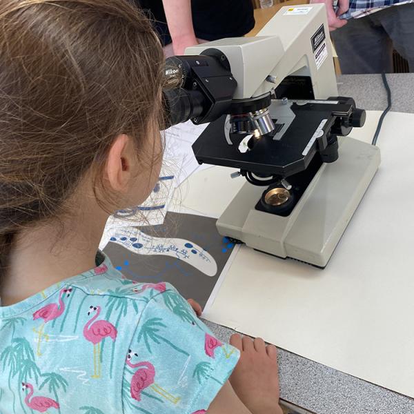 The themes for this day were inspired by the world beneath our feet and the extraordinary artwork of the Fantastical Forest. Artist Hilary Cox Condron and the CCI team welcomed visitors into the beautiful surroundings of Storey’s Field Centre and invited them to wander under some of the hangings from our Fantastical Forest, explore incredible mycelial networks being shared by researchers from the Crop Science Centre and make work in response.