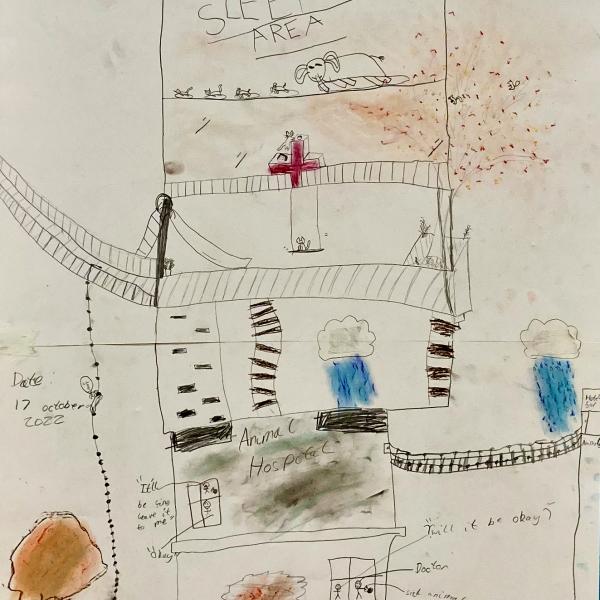 Sally Todd's film (above) captures a flavour of the process and some of their wonderful ideas. Children decided that they wanted a school, library, art gallery, pet shelter, animal cafe, football stadium, rugby pitch, museum with WW2 bunker, small farm, strawberry hut, dinosaur museum, animal forest, woods, trees, pond, hot air balloons, eco-friendly planes and kites, windmill and dog park, supermarket, skate park, botanic gardens and underground exhibition, nature areas and grass, homeless shelter and movie theatre, hospital, pool, zoo and vet, a viewing platform in the trees and a place for fun among many other ideas.